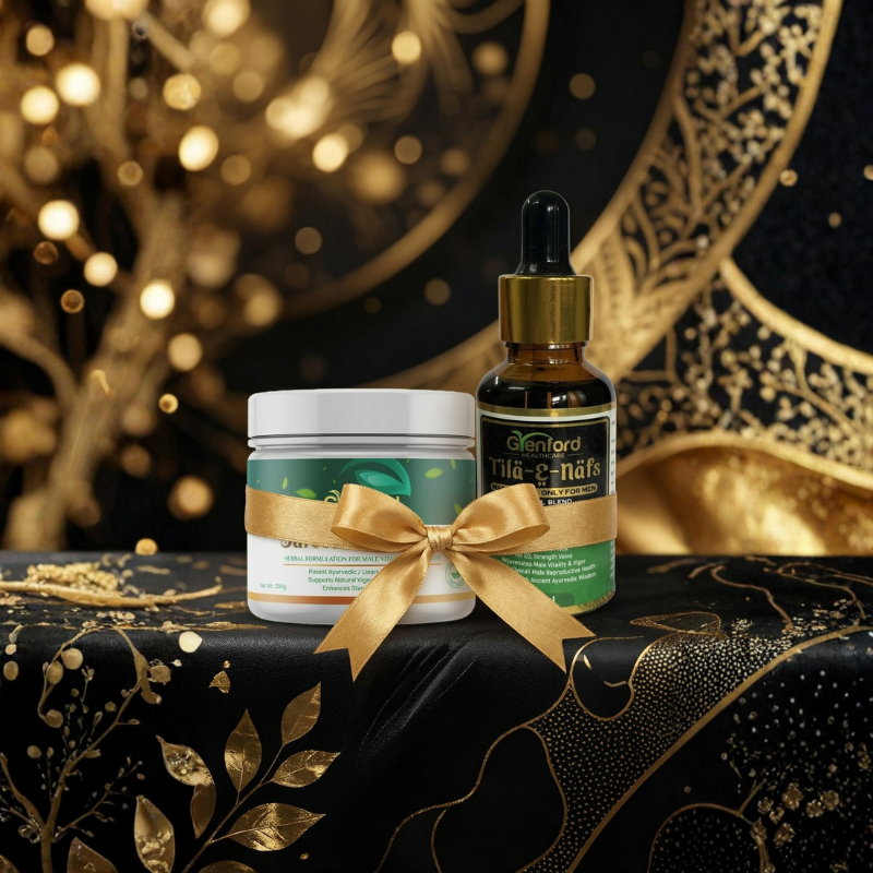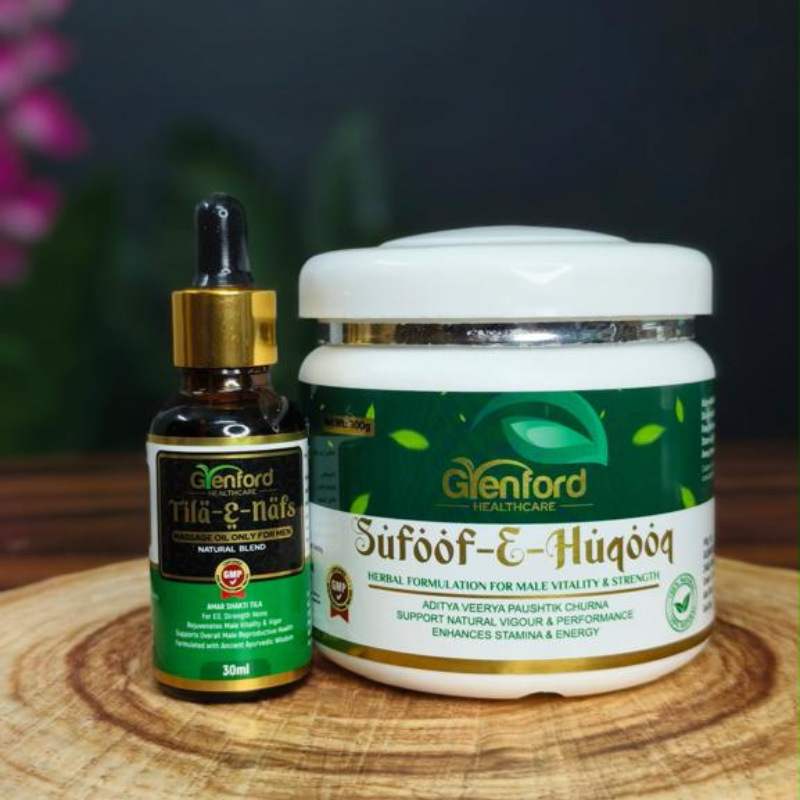 A light yet effective Unani combo featuring oil, capsules, and finely milled safoof for gentle warmth and daily strength support.